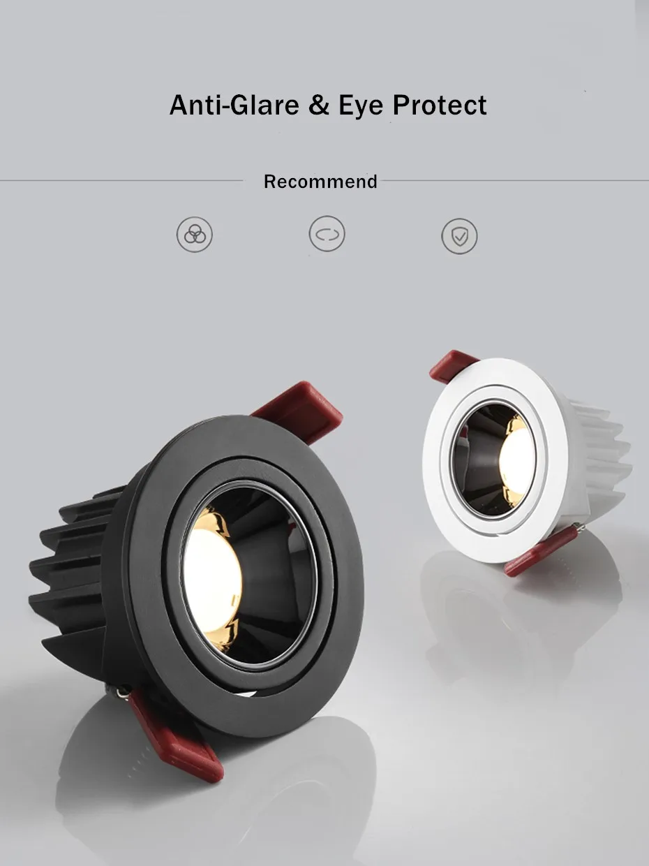 Встраиваемый светодиодный светильник 7 Вт 12 Вт с регулируемой яркостью, потолочный светильник с регулируемым углом для гостиной, спальни, фойе, магазина одежды, офиса