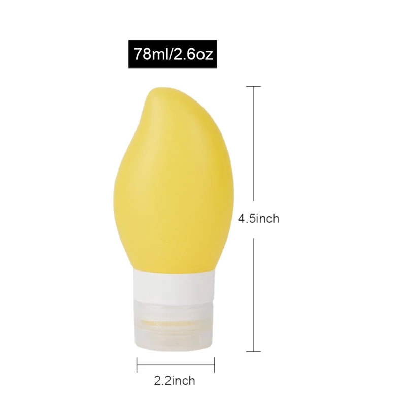Фантастический дизайн: симпатичное манго разных цветов легко различить жидкость внутри бутылки для путешествий. Дизайн мягкого силиконового корпуса и широкого рта, который легко заполняется, сжимается, очищается и заправляется.