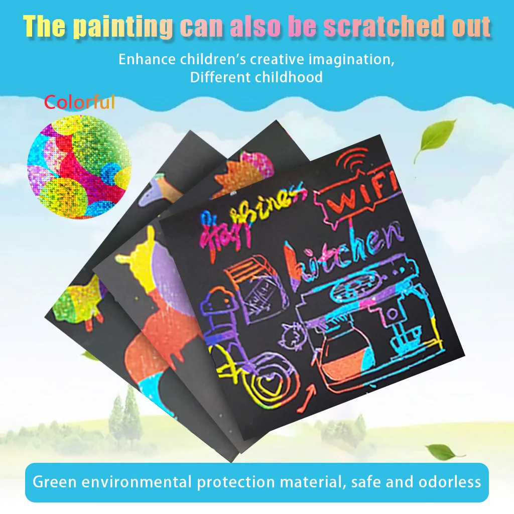 Магия скретч-набор делает Отличный подарок для детей в возрасте 3 лет и старше. Дети могут рисовать, делать заметки, создавать Карты, эскиз, рисование и создание классных иллюстраций и дизайнов. Идеальный Выход для художественных мыслей ваших детей.