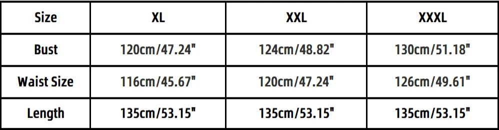Чтобы приобрести этот товар, внимательно сверьтесь с измерениями в нашей таблице размеров, а затем выберите подходящий цвет и размер. Если вы предпочитаете Индивидуальный размер, не стесняйтесь присылать нам свои измерения (длина ткани, бюст, бедра, талия) или связаться с нами через нашу службу поддержки клиентов. Наши опытные дизайнеры с радостью проведут вас в процессе измерения и порекомендуют Вам размер. Обратите внимание, что Ручные измерения могут привести к разнице в 1-3 см в конечном продукте. XL: обхват груди: 120 см/47,24 "обхват талии: 116 см/45,67" Длина: 135 см/53,15" XXL: обхват груди: 124 см 48,82 "обхват талии: 120 см 47,24" Длина: 135 см 53,15" XXXL: обхват груди: 130 см 51,18 "обхват талии: 120 см 47,24" Длина: 135 см 53,15"