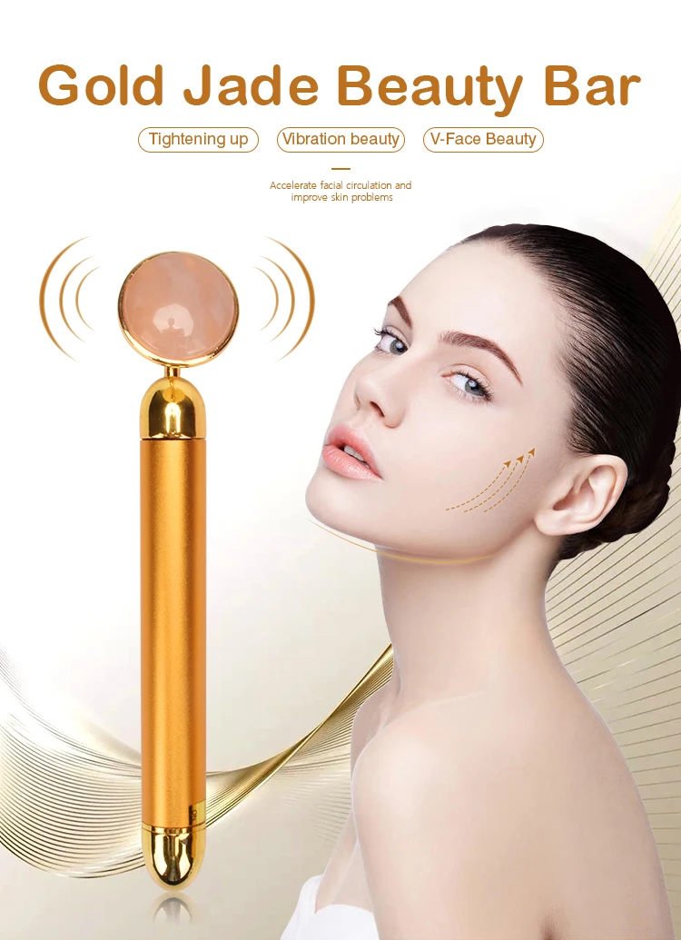 24k Beauty Bar электронный нефритовый роликовый вибрирующий массажер для подтяжки лица, Антивозрастные инструменты для ухода за кожей щек и подтяжки