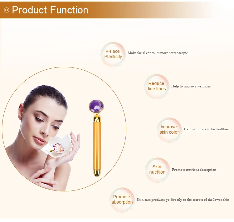 Особенности: 1. Микротоковый массаж, 6000 вибрации, может производить золотые отрицательные ионы для повышения эластичности мышц лица, улучшения кровообращения и обмена веществ. 2. Изогнутая Массажная головка может дотянуться до каждого угла лица, избегая местного формирования лица. 3. Регулируемая Рабочая прочность. Водонепроницаемая конструкция 360 °, безопасная и удобная. 4. Вращая нижнюю ручку для начала и остановки массажа, простое управление. 5. Золотые частицы могут сбалансировать электрическое положение человеческого тела, устранить крупные поры, удалить морщины. 6. Быстро Сжигание жира, подтяжка кожи лица, получение V-образного контура лица. 7. Ускорить кровообращение в глазах, снять усталость глаз и снять черный круг глаз, мешочек. 8. Подходит для различных частей тела, включая лицо, шею, руки, ноги и т. д.