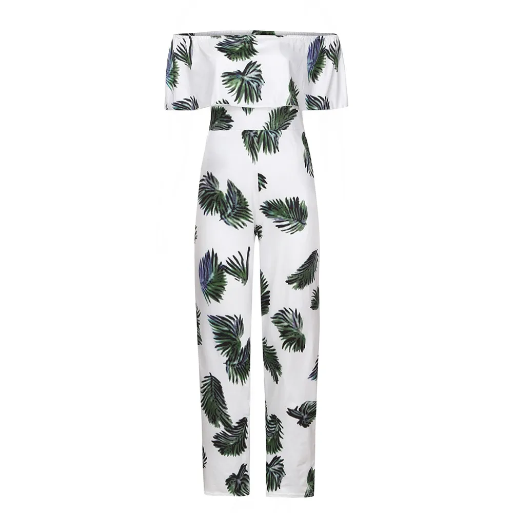 Женский Повседневный комбинезон с открытыми плечами, цветочный Блестящий с принтом листьев, свободный