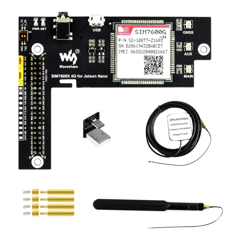 Просто прикрепите его к набору разработчика Jetson Nano, легко Включите такие функции, как высокоскоростное соединение 4G, беспроводная связь, удаленный мониторинг видео, осуществление телефонного звонка, отправка SMS, глобальное позиционирование, И так далее.