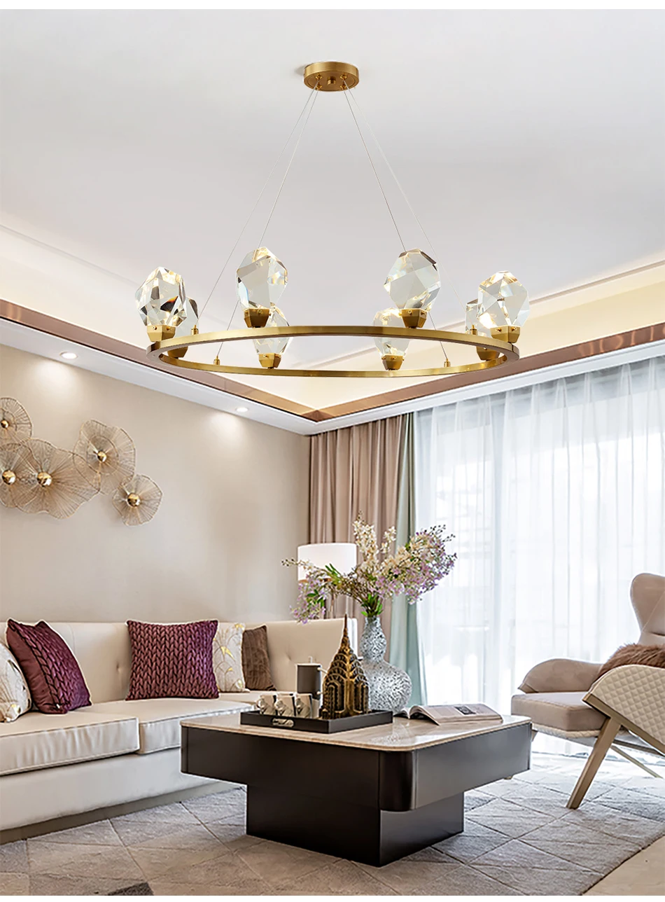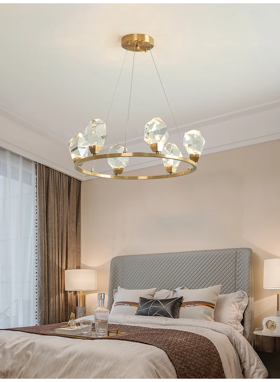 Роскошный медный светильник-люстра ing для гостиной, Современное украшение для дома, хрустальный светильник, Светильники для спальни, алмазные кристаллы, лампы