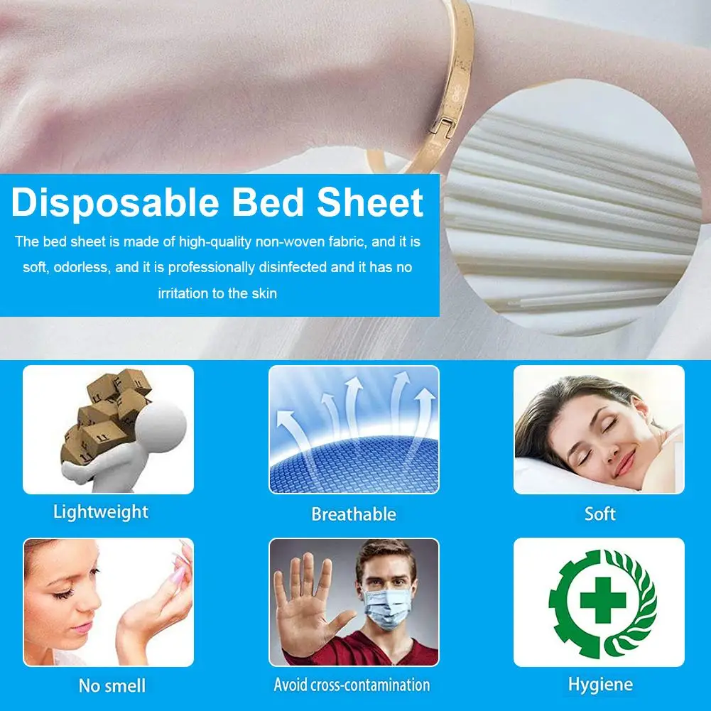 1. Простыня изготовлена из высококачественного нетканого материала, мягкая, без запаха, профессионально дезинфицируется и не раздражает кожу. Пожалуйста, используйте простыню с уверенностью!50 x одноразовые простыни (50 шт./квадратный упак.)