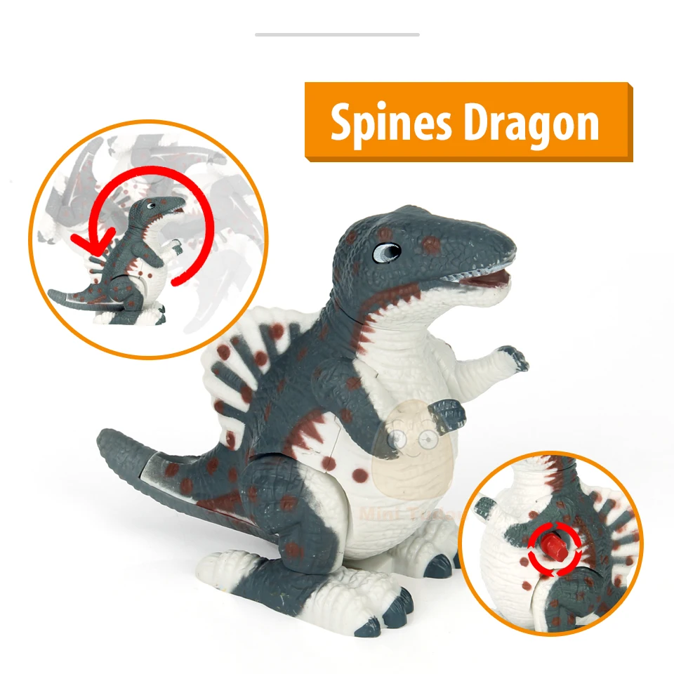 1. Нет необходимости в батарее, поверните часовой механизм в течение 5 туров, вы можете увидеть забавные действия динозавра. 2. Поверните его и наблюдайте за ними в ходьбе, прыжках, переворачивании, катании, повороте кувырка и даже прорыве через воду.