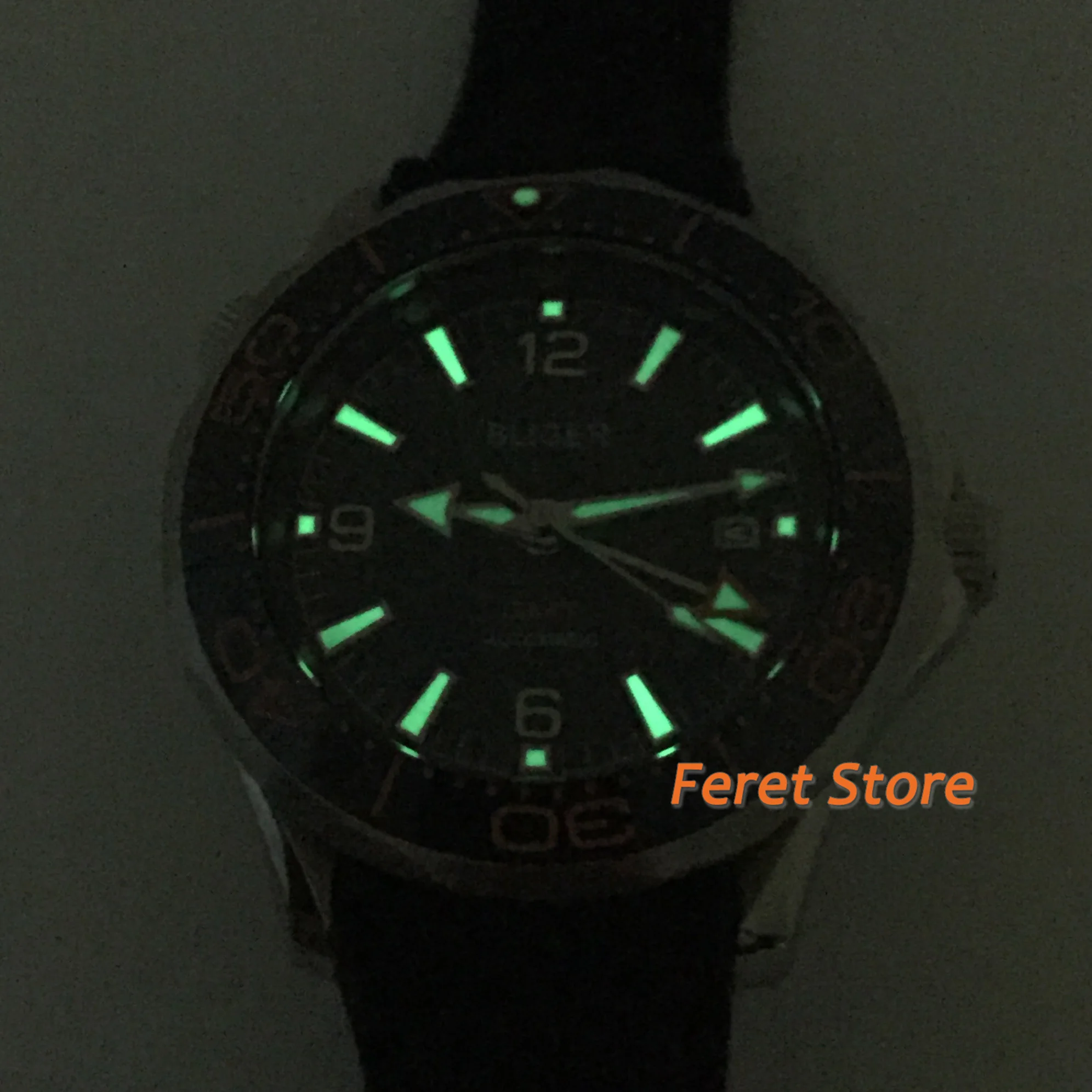Описание продукта: Бренд: BLIGER Часовой механизм: GMT автоматический (с автозаводом) механизм Чехол Материал: Твердый 316L Нержавеющая сталь чехол с однонаправленный керамический Безель Чехол диаметр: 41 мм без короны Чехол Толщина: 14 мм Ширина наконечника: 20 мм С украшением в виде кристаллов: сапфировое стекло Циферблат: синий циферблат Ремешок: резиновый ремешок 50 м Водонепроницаемость