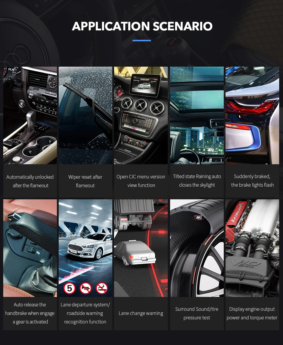 Щетка Hidding функция:Мигающая функция скрытия основана на заводской аппаратной поддержки автомобиля, и функции некоторых флагманских моделей автомобилей мелькают к базовым моделям автомобилей для использования, например, автоматическое включение стеклоочистителей в дождливые дни.