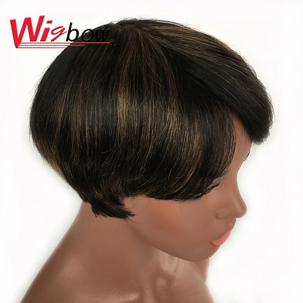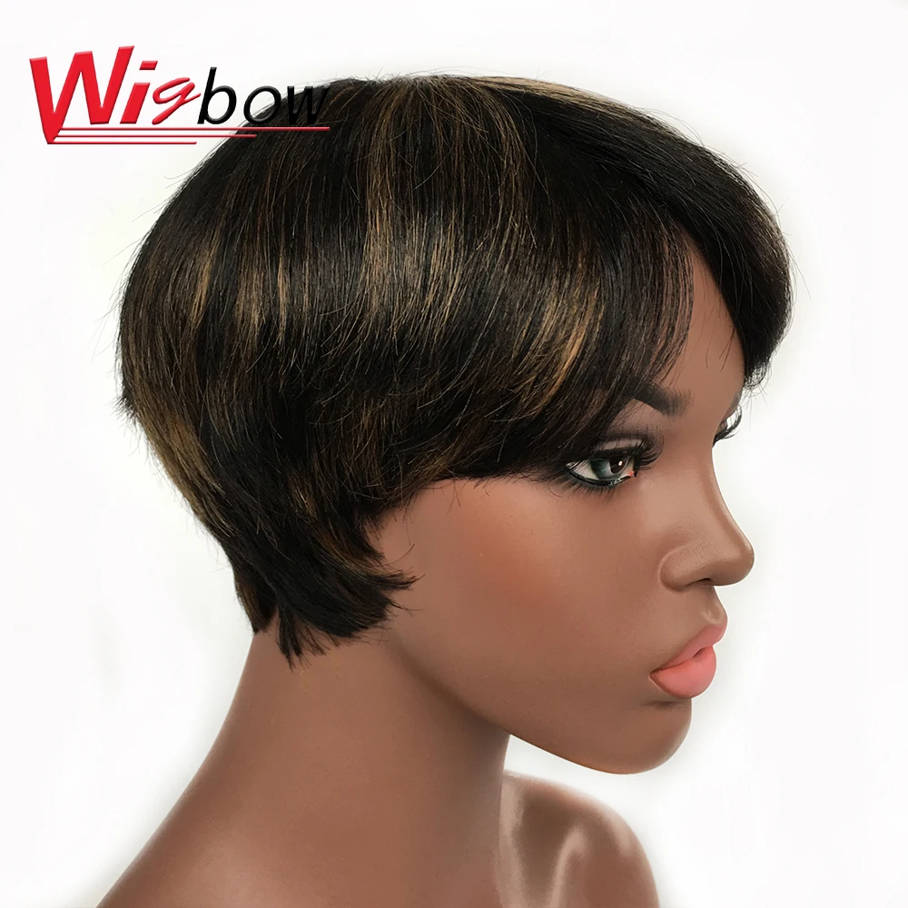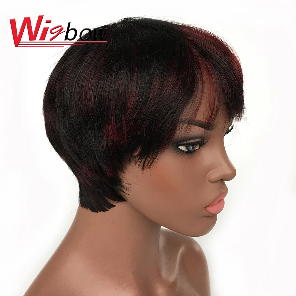 Wigbow Бесплатная доставка короткие прямые 100% человеческие волосы пианино цветные парики
