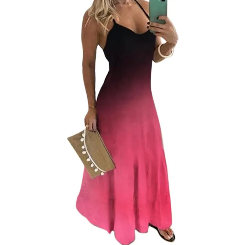 Летнее платье 2020, градиентное макси платье, сексуальные женские платья, длинные пляжные Повседневные Вечерние платья без рукавов, Vestidos Robe Femme