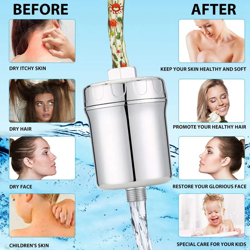 15-ступенчатый высокоэффективный фильтр: наш 15-ступенчатый фильтр особенно добавили две высокоплотные нержавеющие стали и более эффективный фильтрующий материал. Который не только эффективно устраняет осадки, но и значительно уменьшает хлор, тяжелые металлы, грязь, неприятные запахи и помогает контролировать рост масштаба, связанных с сухой, зудящей кожей, экземой, пустулами, акне и плохое здоровье. Предотвращает старение кожи и устраняет второе
