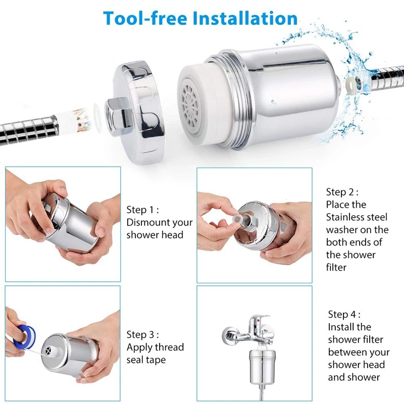 Установка без инструментов: Универсальные соединения работают со всеми насадками и ручными душевыми кабинами. Просто Отвинтите свою настоящую душевую насадку, завинтите в наш универсальный душевой фильтр высокого давления, затем повторно Прикрепите насадку для душа-легко собрать и разобрать.