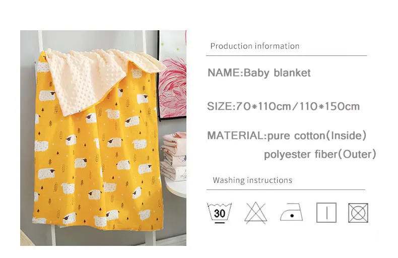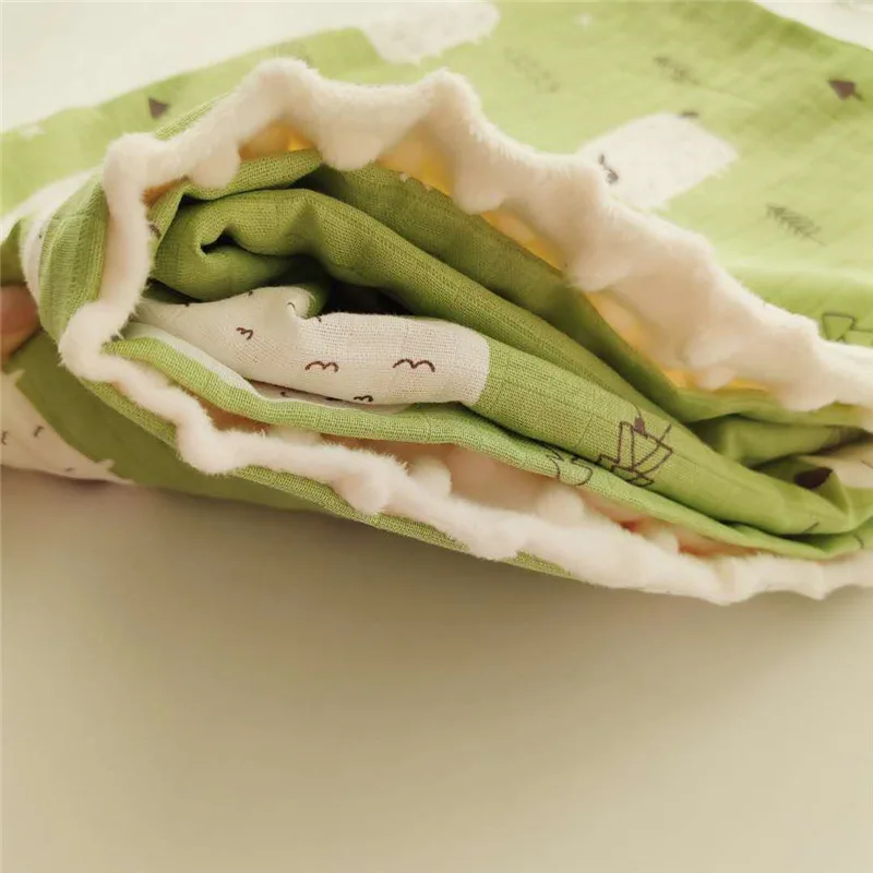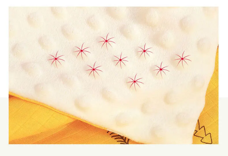 Процесс 3D вспенивания используется, чтобы дать ребенку ощущение ласки. Поверхность одеяла из муслина состоит из двухслойного газового слоя и полиэфирного волокна. Внутренний слой материала изолирует поверхность холодного воздуха, дышащая и не знойная, позволяя ребенку комфортно спать.