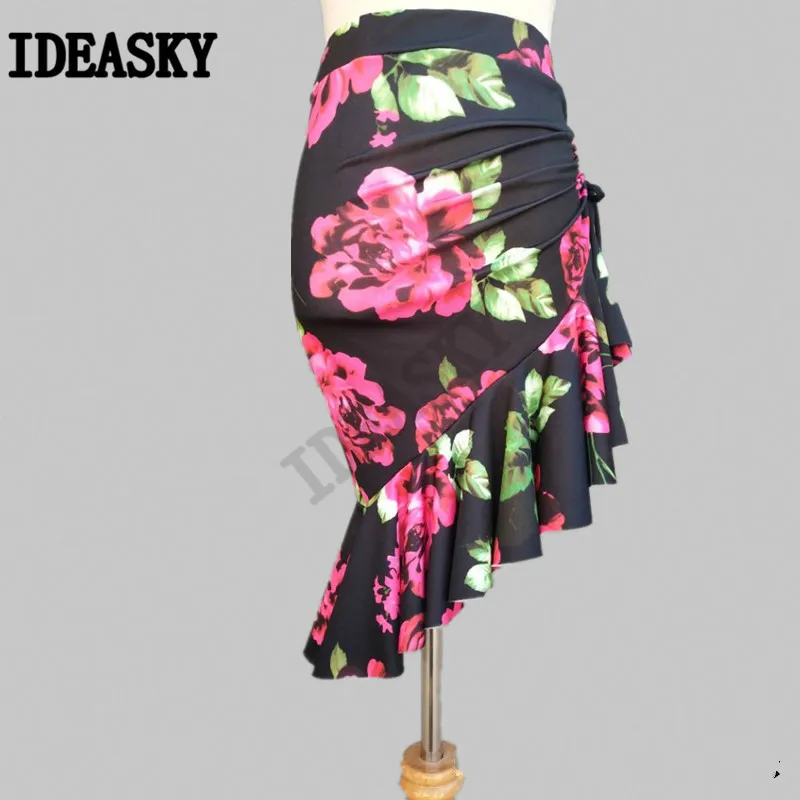 Сексуальная бальная юбка с цветочным принтом и оборками для латиноамериканских танцев ча-Румба, платье для танго, сальсы, одежда для тренировок, танцевальная одежда