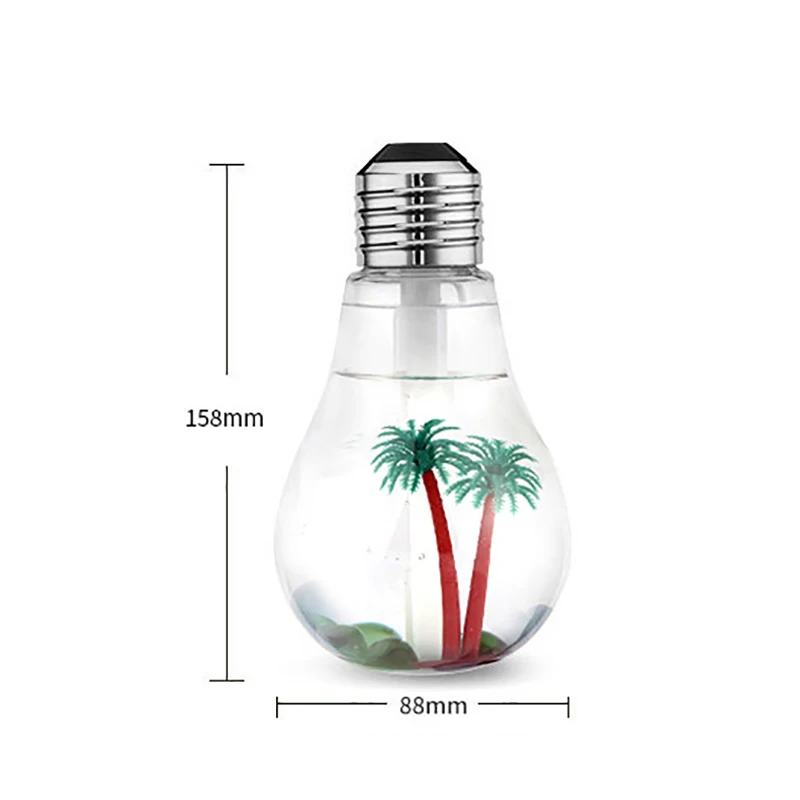 Увлажнитель лампы, питание от USB кабеля, с большой емкостью воды 400 мл, может поддерживать до 10 часов непрерывной работы. Прозрачная лампочка позволяет легко видеть внутренний объем воды. Мини ландшафтное украшение