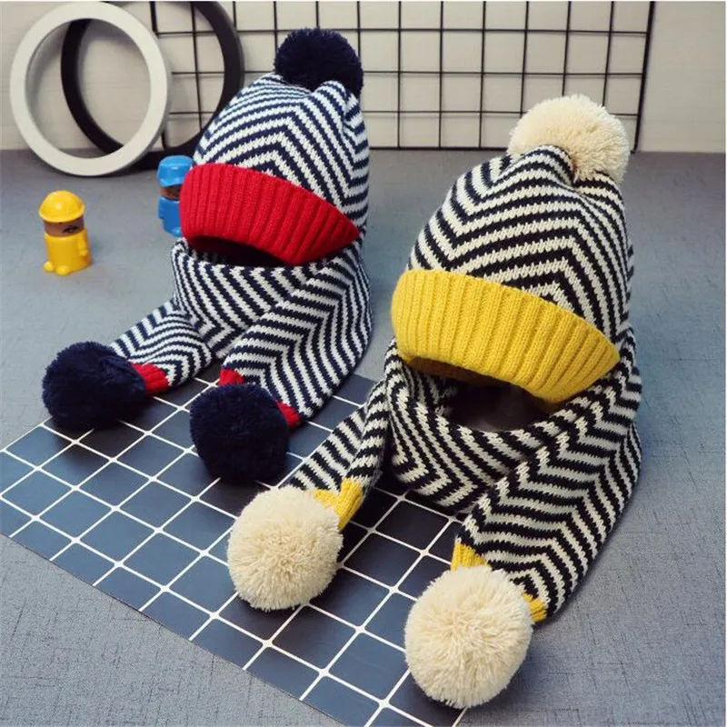 Q 2 шт./компл. детские товары вязаная шапка сохраняющая тепло зимняя с двумя