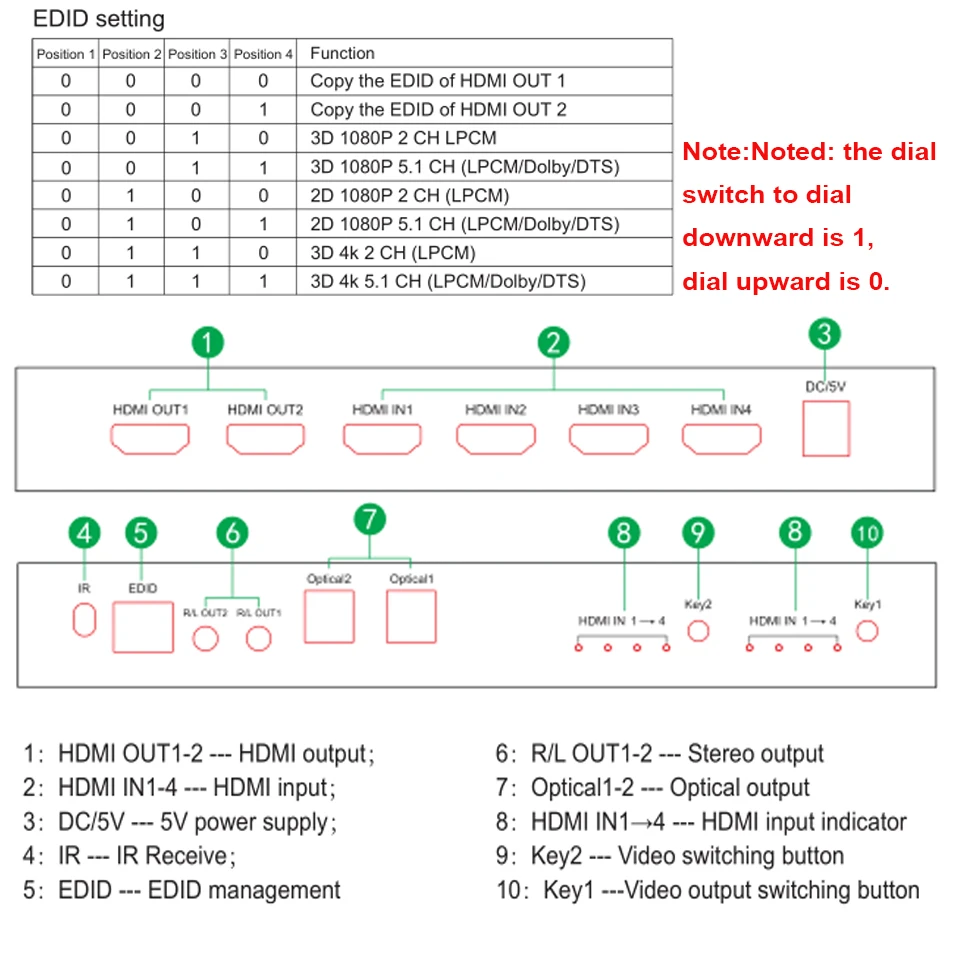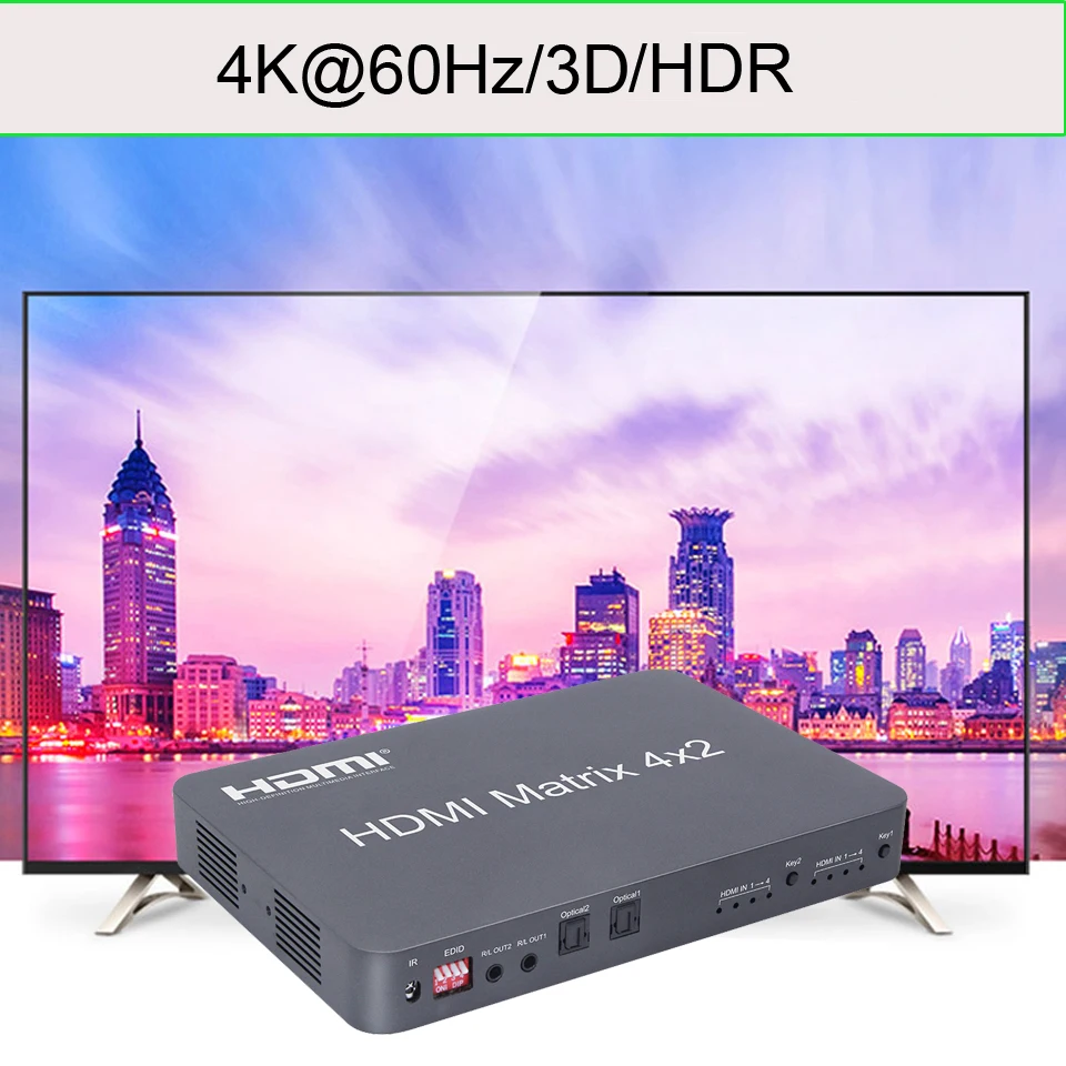 HDMI матрица 4x2 4K 30 Гц 60 Гц HDR переключатель сплиттер 4 в 2 Выход YUV 4:4:4 оптический SPDIF + 3,5 мм разъем аудио экстрактор HDMI коммутатор