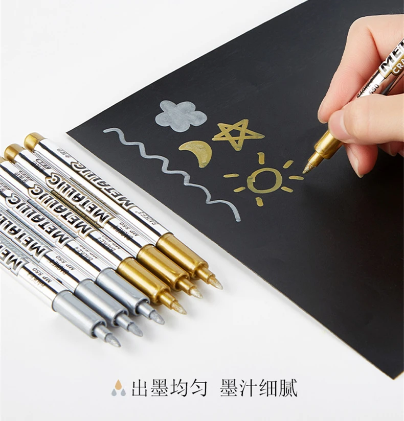 MP-550 металлические маркеры, набор из 4 шт. металлический цвета: золотистый, серебристый несмываемые чернила круглый носок ручка линия Ширина 1,5 мм Краски маркеры