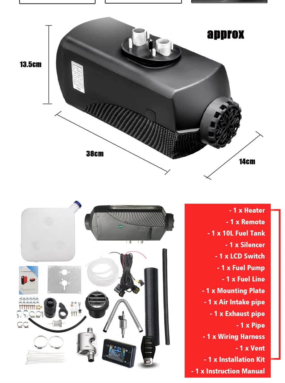 -Размер нагревателя: прибл. 14x38x13.5см