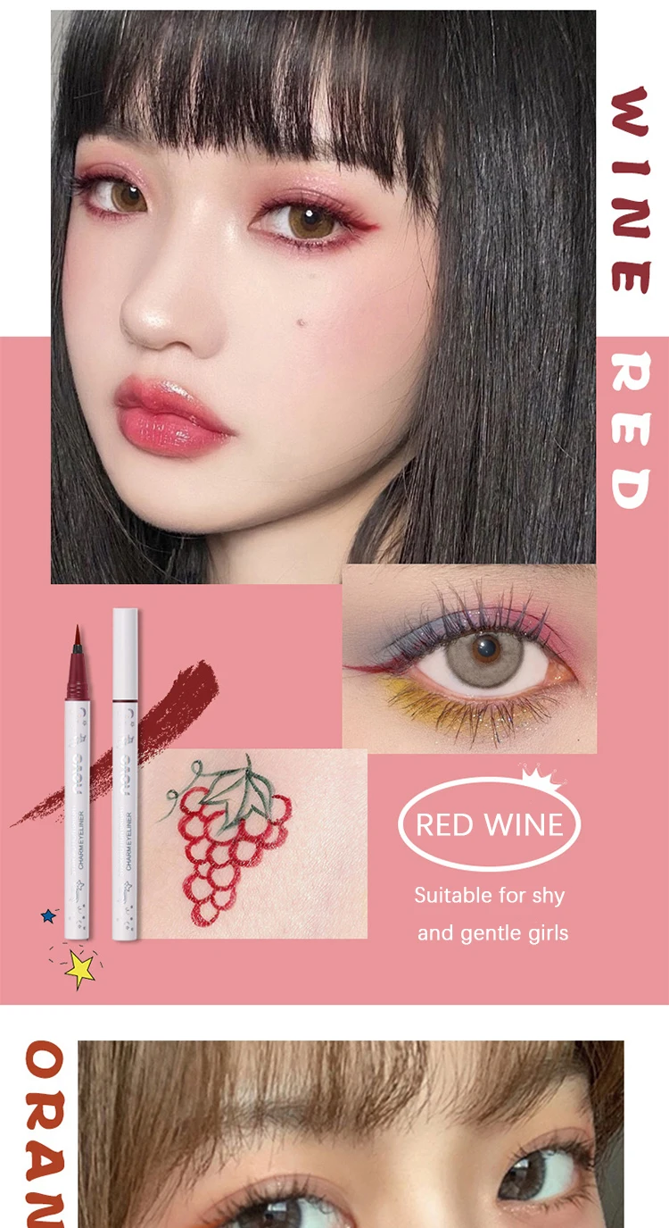2. Правильно проведите по контуру глаза, эффект является относительно мягким и естественным, и конец глаза может быть естественным образом расширен. 3. Если вы хотите преувеличивать эффект, вы можете подобрать его в конце ваших глаз, чтобы сделать ваши глаза яркими и очаровательными.