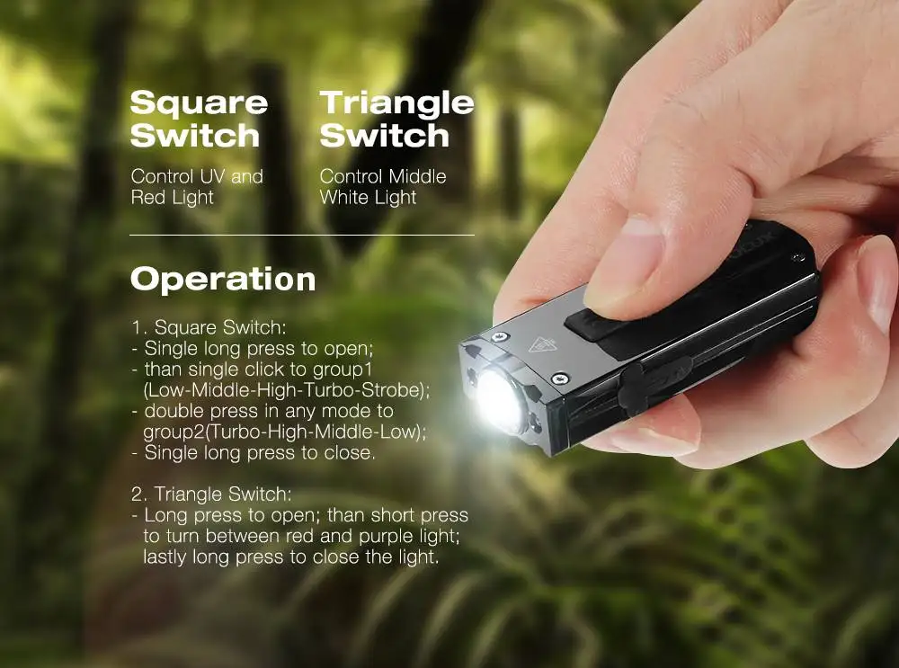 Название продукта: Astrolux K1 бронза XP-G3 350LM USB мини светодиодный брелок для ключей Торговая марка: Astrolux Модель: K1(Новый драйвер) (специальное издание) Излучатель Тип: XP-G3 + 365nm UV светодиодный + красный светодиодный Светильник температуры: 6000-7000K Светильник Цвет: Холодный белый Материал: Нержавеющая сталь Цветовая температура: 3x Режим: Group1: низкий, средний, высокий, турбо, стробоскопических источников света (нажмите кнопку> 1,5 секунд)
