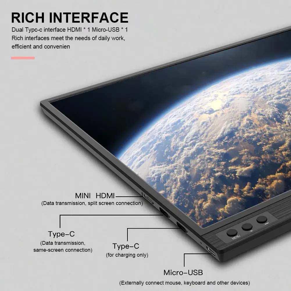 Точки пули: 1 、 HD IPS Экран: 15,6 дюйма 1920X1080P full HD IPS Экран. Портативный дисплей USB Type-C совместим с источником сигнала USB Type-C. 2. Ультра-легкий дизайн: ультратонкий usb-дисплей поставляется с гладкой металлической текстурой. Для одновременного предоставления видеосигнала и питания необходим только один кабель USB Type-C для обеспечения разрешения full HD. 3. Несколько интерфейсов s: Встроенный TYPEC, HDMI, интерфейс Micro USB, поддерживает мобильный телефон и компьютер на одном экране для большего количества подключений. 4. Широкая совместимость: дисплей используется для системы Windows 10, с выходным устройством HDMI для двухэкранного дисплея; Поддержка входного сигнала HDMI HD 1080. 5. Подходит для: подходит для игр в офисе или школе, дома, в фильмах или для просмотра большего количества экранов. Портативный и практичный; Обеспечивает высокое качество жизни. Спецификация: Тип: портативный дисплей Позиционирование продукта: портативное использование (мобильный телефон через линию) Модель продукта: P15A Экран Размер: около 15,6 дюйм (ов) Цвет корпуса: черный Характеристики: без касания/без аккумулятора Материал: нижняя часть корпуса Лучшее разрешение: 1920RGB * 1080P Соотношение экрана: 16: 9 (широкий экран) Стандарт HD: 1080P (full HD) Тип панели: полный угол обзора IPS Тип подсветки: W-LED подсветка Интерфейс: Источник питания: TYPE-C * 1 Данные: TYPE-C * 1, MINI HDMI * 1 Видео: TYPE-C, MINI HDMI * 1 Другие интерфейсы: Micro-USB Поддерживает полнофункциональный мобильный телефон Type-c модели: для Mate 10, Mate 10 PRO, Mate 20, Mate 20 PRO, S8, S8 +, S9 и т. Д. Поддерживает полнофункциональные модели ноутбуков Type-c: для MacBook 12 дюймов, MacBook Pro, MacBook Pro 2018 и т. Д. Вес: около 680 г Размер продукта: около 356*224*9 мм/14,02*8,82*0,35 дюймов Размер упаковки: около 400*270*80 мм/15,75*10,63*3,15 дюймов