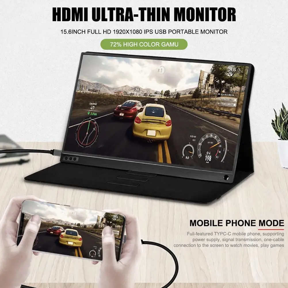 Большой ультратонкий игровой монитор экран 15 6 дюйма Full HD IPS порт USB Type C для Ps4