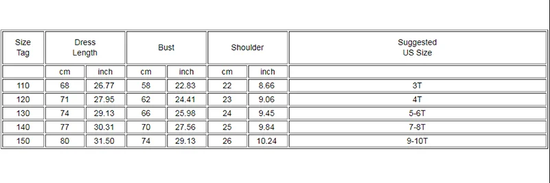 Size: 100-110-120-130-140-150