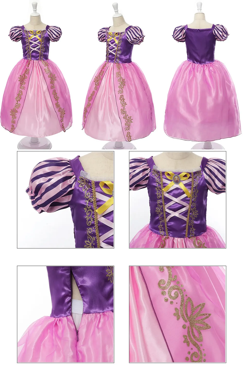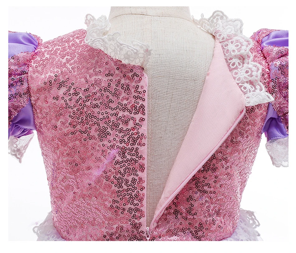 Name: Girls Princess Tangled Dress Sequins Fancy Cosplay Costume For Kids Long Hair Purple Luxury Ball Gown Halloween Birthday Party Vestido
