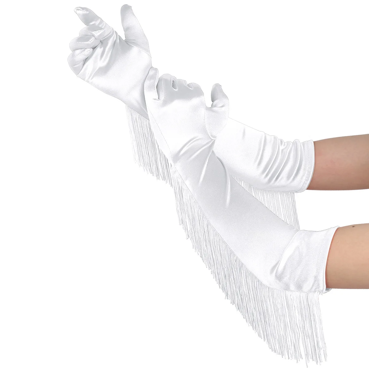 Отличные танцевальные перчатки для женщин, которые хорошо сочетаются с маскарадным платьем, повязкой на голову, жемчужным ожерельем, сигаретной палкой и всеми другими аксессуарами.