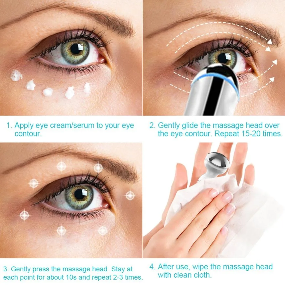 Устройство предназначено для массажа и лифтинга кожи вокруг глаз, улучшения поглощения средств по уходу за кожей, помогает уменьшить отечность под глазами/мешки для глаз/темные круги/гусиные лапки/тонкие линии/морщины. Регулярное использование подарит вашей коже омолаживающий эффект и придаст здоровый вид! Технические характеристики: Название: массажер для кожи вокруг глаз Артикул: QD453S Материал корпуса: АБС-пластик Питание: аккумуляторная батарея AA 1 шт. (не входит в комплект) Выходная мощность: макс. 0,05 Вт Вес упаковки: 54 г Комплектация: Массажер для кожи вокруг глаз 1 шт. 1 * Руководство пользователя Способ применения 1. Снимите крышку батарейного отсека, вставьте батарейку AA (не входит в комплект), а затем закройте крышку батарейного отсека. 2. Нанесите крем для век или сыворотку для ухода за кожей вокруг глаз. 3. Прикоснитесь к индукционной полосе вручную (как показано на видео по ссылке на товар). Аккуратно проведите массажной насадкой, чтобы подтянуть кожу вокруг глаз. Повторите процедуру 15–20 раз. 4. Аккуратно нажмите на массажную головку, чтобы улучшить впитывание крема для век или сыворотки. Останавливайтесь на каждом участке около 10 секунд и повторите процедуру 2–3 раза. 5. После использования, протрите массажную насадку чистой тканью. Примечание: чтобы лучше понять способ применения, посмотрите наше видео (см. Ссылку на товар), оно демонстрирует, как правильно удерживать устройство в нужном месте. Также прилагается инструкции по эксплуатации. По любым вопросам обращайтесь в нашу службу поддержки клиентов, мы всегда готовы быстро вам помочь. Мы приветствуем любые советы. Заранее благодарим! Способ применения: Снимите крышку батарейного отсека, вставьте батарейку AA (не входит в комплект), а затем закройте крышку батарейного отсека. 1. Кожа вокруг глаз 1.1. Нанесите крем для век или сыворотку для ухода за кожей вокруг глаз. Примечание: нанесите достаточное количество крема для век или сыворотки. Не рекомендуется наносить слишком много крема для век или сыворотки, так как кожа не сможет полностью впитать весь объем. Кроме того, оставшаяся жидкость может попасть внутрь устройства и тем самым сократить срок его службы. 1.2. Аккуратно проведите массажной насадкой, чтобы подтянуть кожу вокруг глаз. Повторите процедуру 15–20 раз. Примечание: Убедитесь, что ваши руки находятся на индукционной полосе, в противном случае устройство не будет работать. 1.3. Аккуратно нажмите на массажную головку, чтобы улучшить впитывание крема для век или сыворотки. Останавливайтесь на каждом участке около 10 секунд и повторите процедуру 2–3 раза. 1.4. После использования, протрите массажную насадку чистой тканью. 2. Кожа лица 2.1. Нанести средство для ухода за кожей. 2.2. Аккуратно проведите массажной насадкой, чтобы подтянуть кожу лица. Повторите процедуру 15–20 раз. Это поможет уменьшить морщины на лбу, на линии губ, тонкие линии вокруг рта, а также ускорить кровообращение. Примечание: Убедитесь, что ваши руки находятся на индукционной полосе, в противном случае устройство не будет работать. 2.3. После использования протрите массажную насадку чистой тканью. Примечание: помимо контура глаз и лица, вы также можете использовать прибор для массажа других частей тела, таких как руки, талия и ноги. Хранение и уход: 1. Протирайте устройство чистой тканью (сухой или влажно