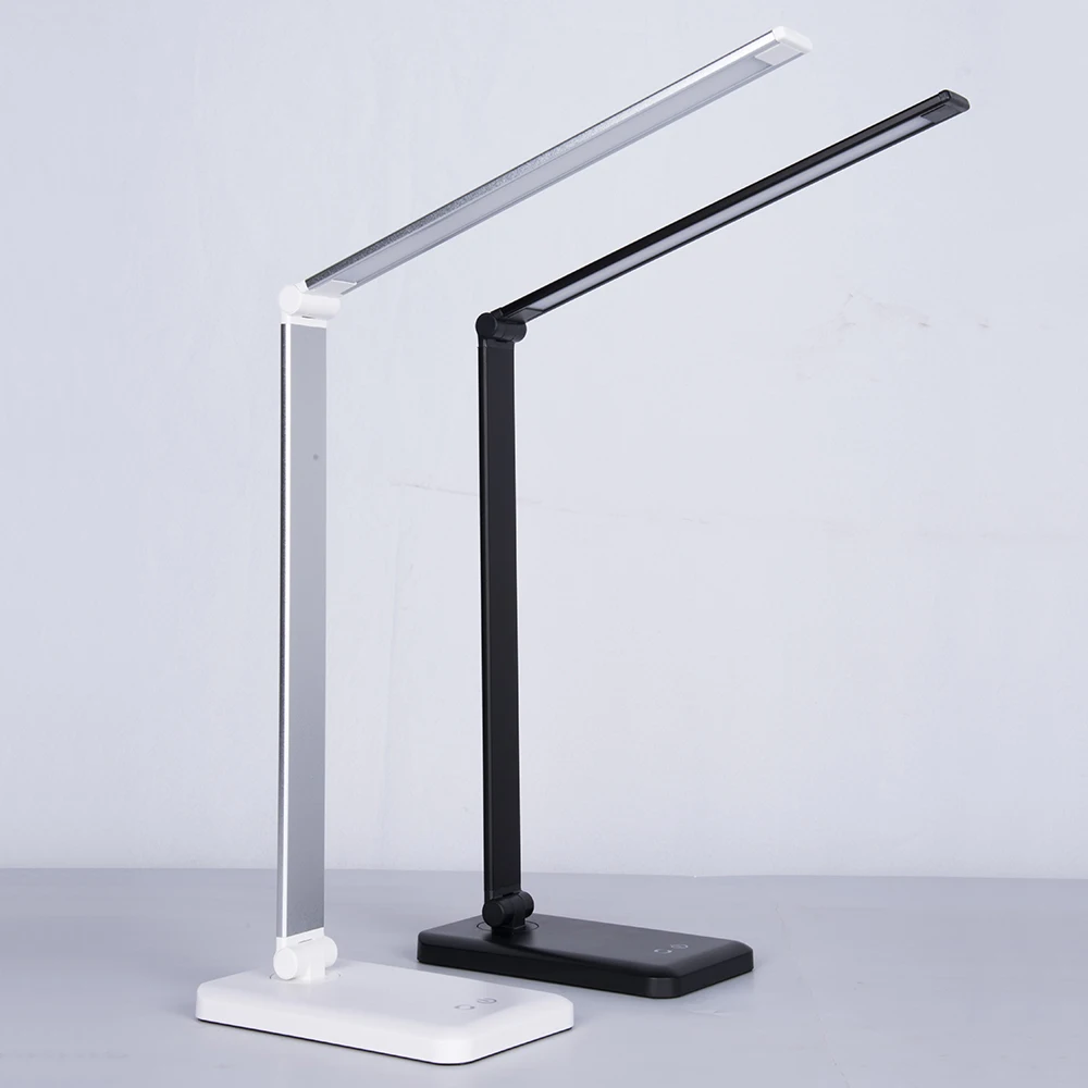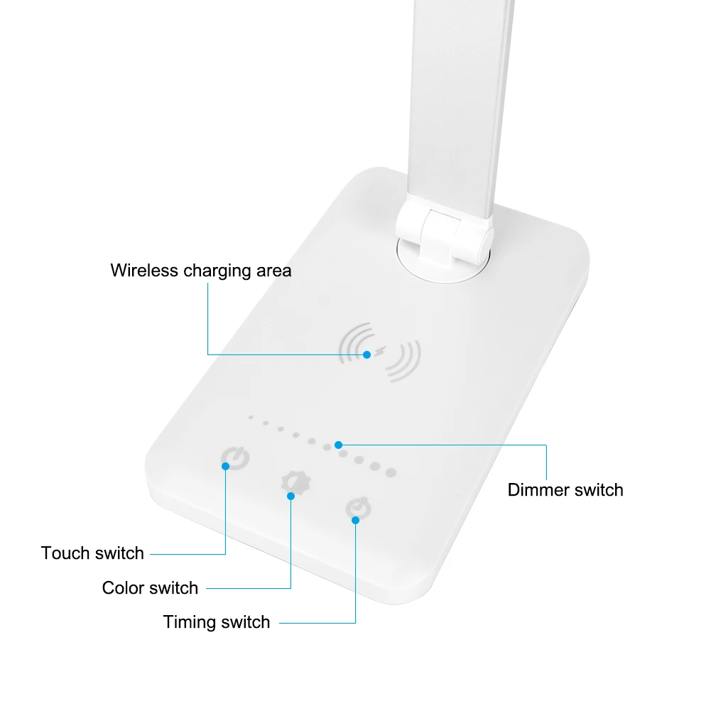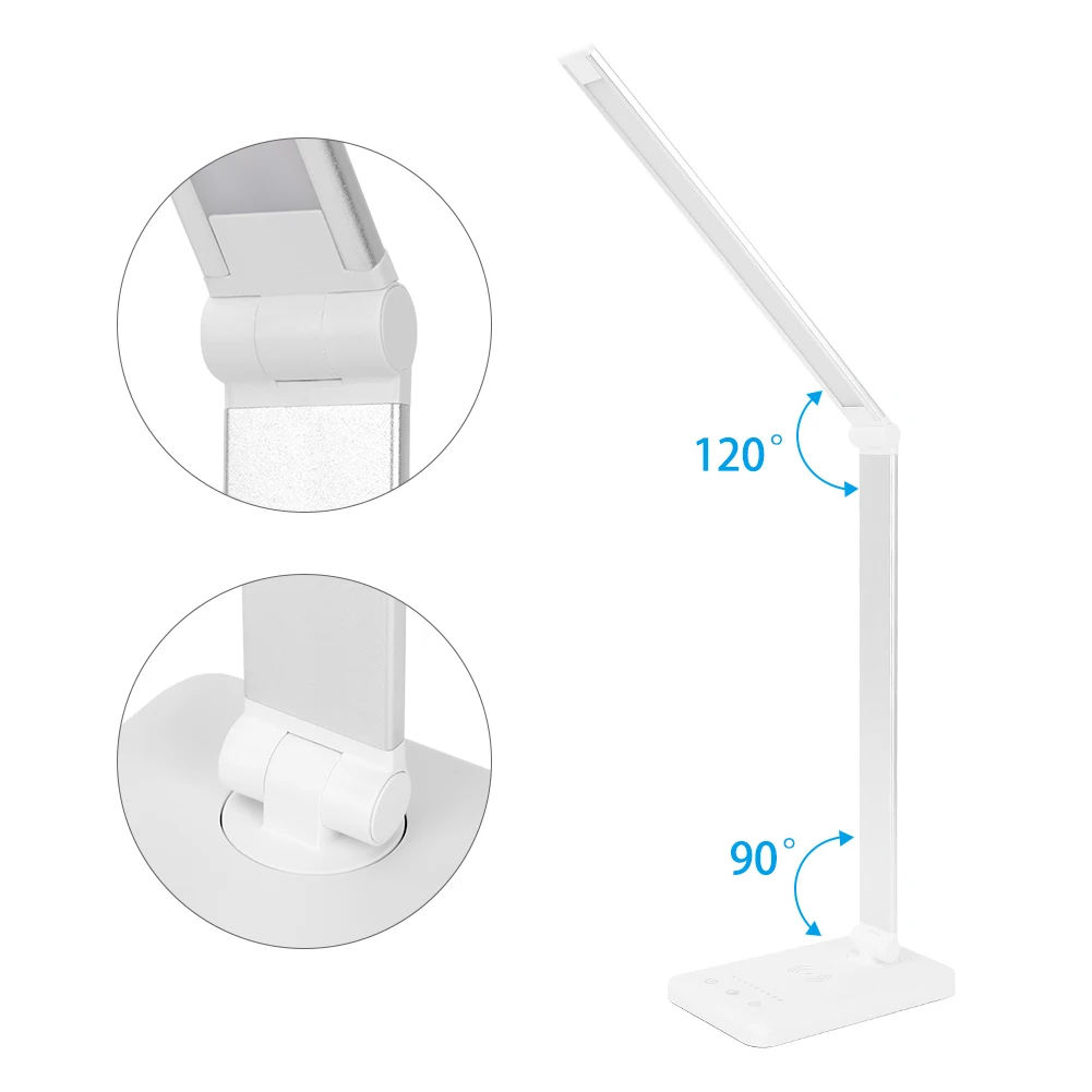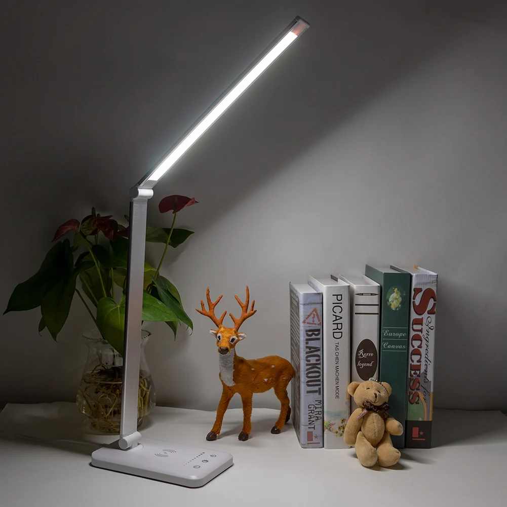 Светодиодный настольный светильник с бесступенчатой регулируемой яркостью и беспроводной зарядной вилкой QI для защиты глаз Многофункциональный светильник для чтения для телефона char