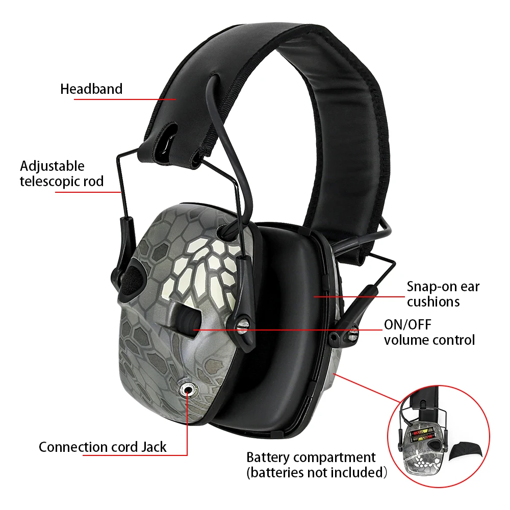 Удобная и регулируемая повязка на голову. Снижение уровня шума, защита вашего слуха. Это позволяет слышать важные команды в диапазоне и критических звуках окружающей среды при охоте.