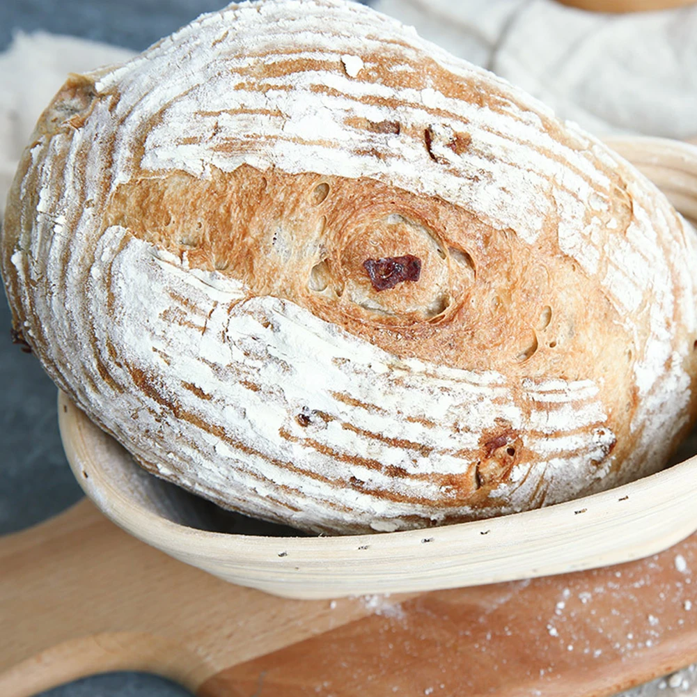 Пылезащитная корзина с достаточным количеством муки, чтобы заполнить все уголки и трещины между тростниковыми спиралями. Он сохранит тонкий слой муки, чтобы предотвратить прилипание теста в корзину