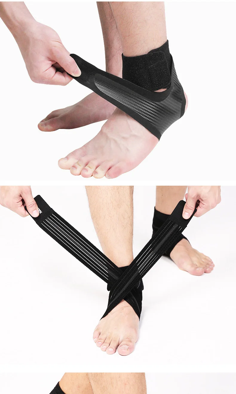 1. Поместите лодыжку и стопу 2. Затяните, чтобы держаться на лодыжке 3. Вытяните липучку с обеих сторон 4. Прикрепите липучку с обеих сторон 5. Оберните повязку вокруг лодыжки 6. Отделка