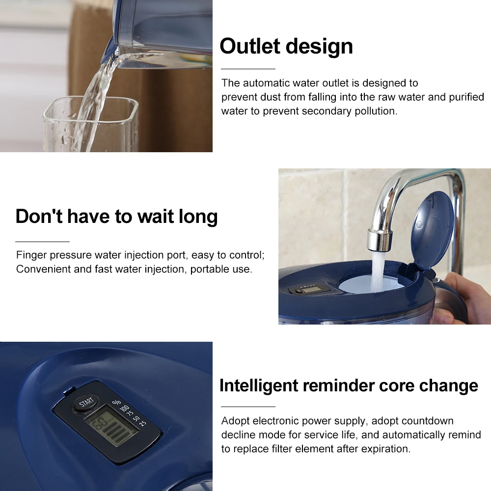 Без установки, портативный и простой в использовании, четырехслойная технология фильтрации может эффективно удалять загрязнения из воды.