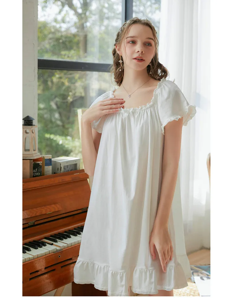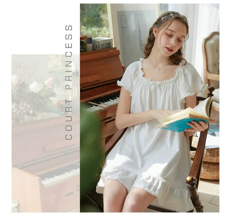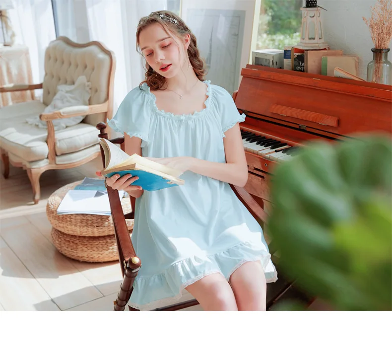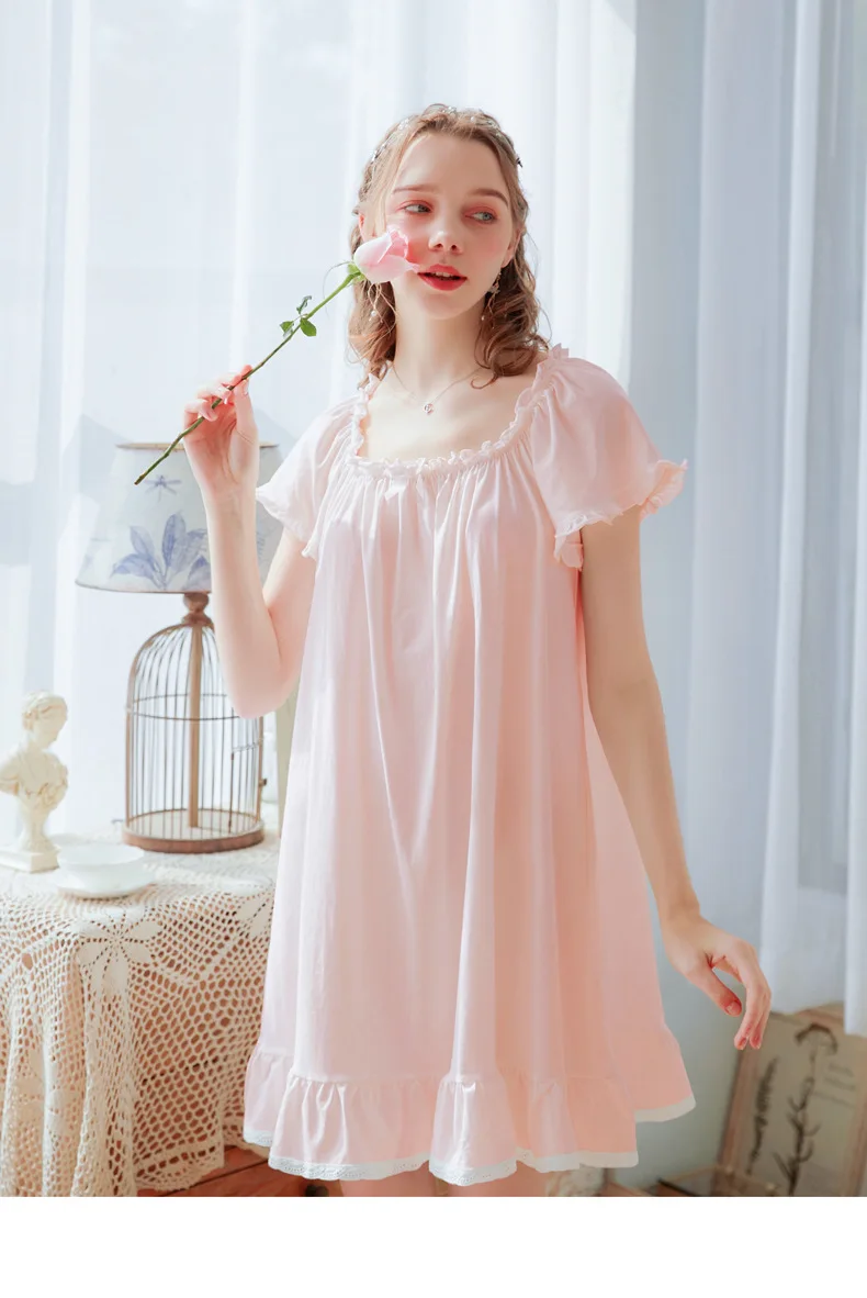 Женская ночная рубашка, домашний халат, хлопок, короткий рукав, женский летний наряд, Милая принцесса, свободного размера плюс, Повседневная Пижама Размеры (единица измерения: см) (1 см = 0,39 дюйма, 1 дюйм = 2,54 см) S Предполагаемый вес 42-53 кг Длина 86, обхват груди 96, рукав 20 M Предполагаемый вес 53-63 кг Длина 88, обхват груди 100, рукав 20 L Предполагаемый вес 63-67 кг Длина 90, обхват груди 104, рукав 21 XL рекомендуемый вес 67-78 кг Длина 92, обхват груди 108, рукав 21