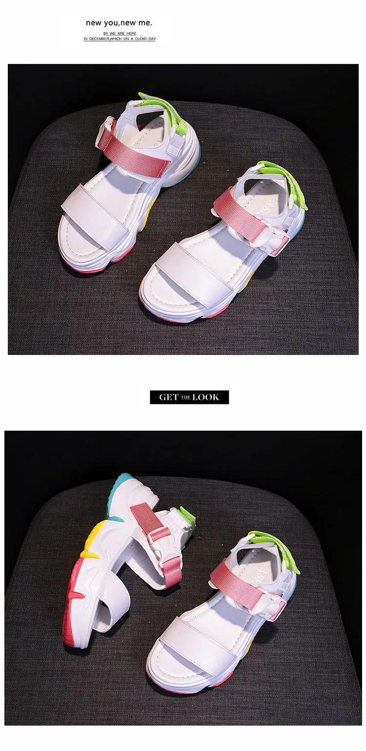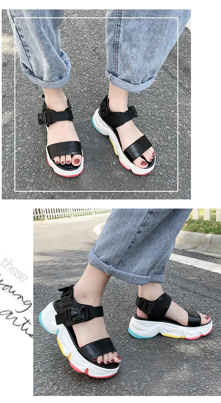 Новые женские сандалии, женские летние сандалии на платформе, женские дышащие удобные сандалии для прогулок, белые туфли, женская обувь Женские летние сандалии на платформе, пикантная женская обувь на платформе с открытым носком, повседневная обувь, женская пляжная обувь, женские сандалии