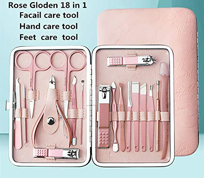 Набор для профессионального маникюра из нержавеющей стали под розовое золото, набор для педикюра, ножницы для носа, бритва для бровей, семейный набор для ухода за ногами