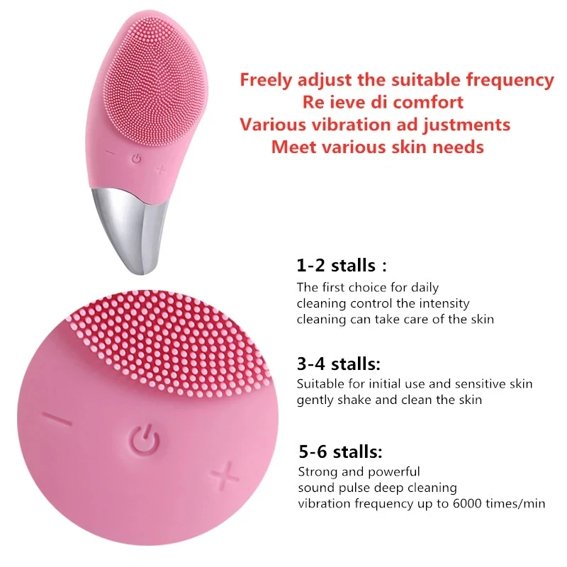 Особенность:Силиконовые щетинки заменяют нейлоновые щетинки, благодаря чему они обеспечивают бережную и эффективную очистку и передачу информации. Более того, уборка простая и тщательная, можно поддерживать больше гигиены. Мощный аккумулятор обеспечивает более длительное время без частой подзарядки. Кончик выполнен как наконечник, поэтому он может проникать в углы и зазоры вокруг носа. Обеспечивает все типы кожи (включая акне и чувствительную кожу) с изменяемым уровнем интенсивности, более универсальными и гибкими вариантами Идеальный двигатель обеспечивает правильную и мощную вибрацию. Он может не только очистить больше косметики и пор, удалить черные точки, уменьшить акне, но и глубоко массировать кожу, привнести энергию на лицо и получить лучшие впитывающие средства для кожи. После использования вы почувствуете себя гладкой, свежей и сияющей.