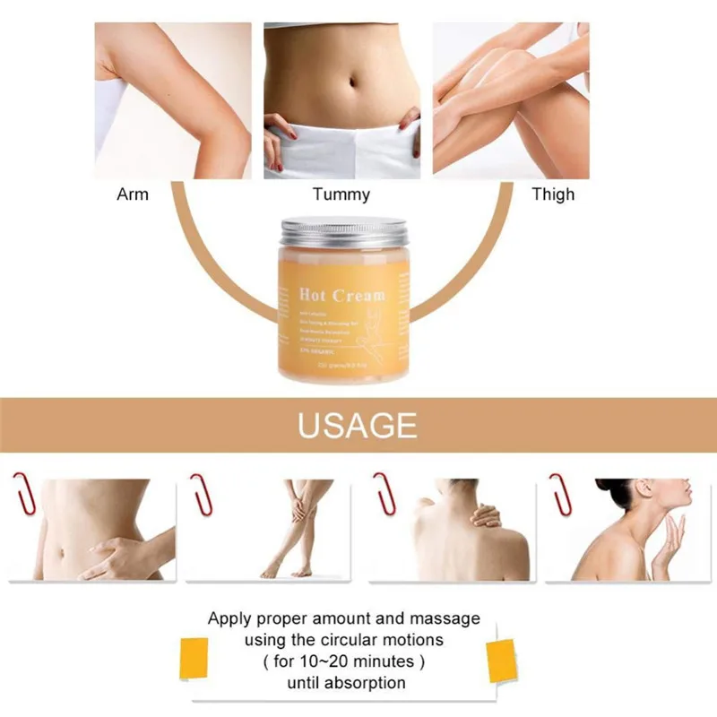 Целлюлитный крем, 250 г крем для похудения и укрепления тела, сжигатель жира, горячий крем для подтяжки тела Горячий крем: Наш мощный крем для похудения может быстро производить тепло, чтобы устранить избыточные вещества в организме и подавить поглощение избыточных питательных веществ. Подходит для всех типов ожирения. Сжигать жир в основном для талии, живота, ног и других частей. Способствует более быстрому сжиганию подкожной жировой ткани. Идеально подходит для женщин и мужчин, которые хотят похудеть. Быстрый тонкий эффект: перед тем как вставать и спать ежедневно, нанесите необходимое количество и массируйте круговыми движениями (в течение 10-20 минут) до впитывания. Постепенный механизм высвобождения через ночь, дает вам эффектный Укрепляющий и разглаживающий эффект поверхности кожи. Помогает придать форму красивому и привлекательному телу. Рекомендуется для использования во время диеты и эффективного увеличения физической активности. Вы увидите очевидный эффект Отсутствие побочного эффекта: 100% натуральное органическое содержание. Текстура-это светильник, который легко впитывает, способствует метаболизму, помогает затянуть и смазывать мышцы, укрепляет мышцы. Принесет вам здоровое лицо и твердые линии тела. Быстрая и здоровая потеря веса, безопасно без каких-либо побочных эффектов. Увеличение потоотделения: просто сжигайте дополнительные калории, увеличивая циркуляцию тела, температуру тела и пот во время тренировки. Сжигание жира и токсинов одновременно, оставляя вам здоровье и гладкую кожу. Гладкая и плотная кожа: мягкая и приятная для кожи формула обеспечивает кожу более питательными ингредиентами, которые быстро впитываются в кожу. Способствует разрушению жировых клеток, уменьшая внешний вид целлюлита. Улучшая слабую кожу, делая вашу кожу плотной и нежной Описание: наш продукт просто разработан с использованием высокого качества. Антицеллюлитный горячий крем чрезвычайно эффективен для улучшения тонких линий, увлажнения и улучшения общей текстуры кожи. Это помогает уменьшить появление целлюлита на животе, бедрах, ягодицах, так что тело токсичных и вредных веществ из тела быстрее! Кроме того, он быстро производит тепло для устранения избыточных веществ в организме и подавляет поглощение избыточных питательных веществ. Мы гарантируем высокое качество целлюлитных горячих кремов и изысканное мастерство. Особенности: 1. Наш продукт просто разработан с использованием высокого качества. 2. Антицеллюлитный горячий крем чрезвычайно эффективен для улучшения тонких линий, увлажнения и улучшения общей текстуры кожи. 3. Это помогает уменьшить появление целлюлита на животе, бедрах и ягодицах, так что тело токсичных и вредных веществ из организма быстрее! 4. Быстро производит тепло для устранения избыточных веществ в организме и подавляет поглощение избыточных питательных веществ. 5. Мы гарантируем высокое качество целлюлитных горячих кремов и изысканное мастерство. Характеристики: Тип изделия: Антицеллюлитный горячий крем Размер изделия: прибл. 8,5x7x7 см/3,3x2,8 x 2.8in Посылка Вес: Approx.250g/8,8 oz Посылка включает в себя: 1 горшок с целлюлитным горячим кремом