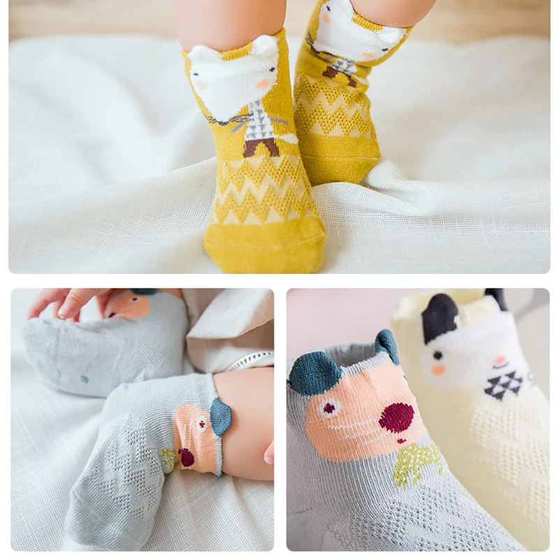 5 пар/компл. летние сетчатые носки для новорожденных детские носки с забавными рисунками для мальчиков и девочек, мягкие из тонкого хлопка для малышей, детские носки