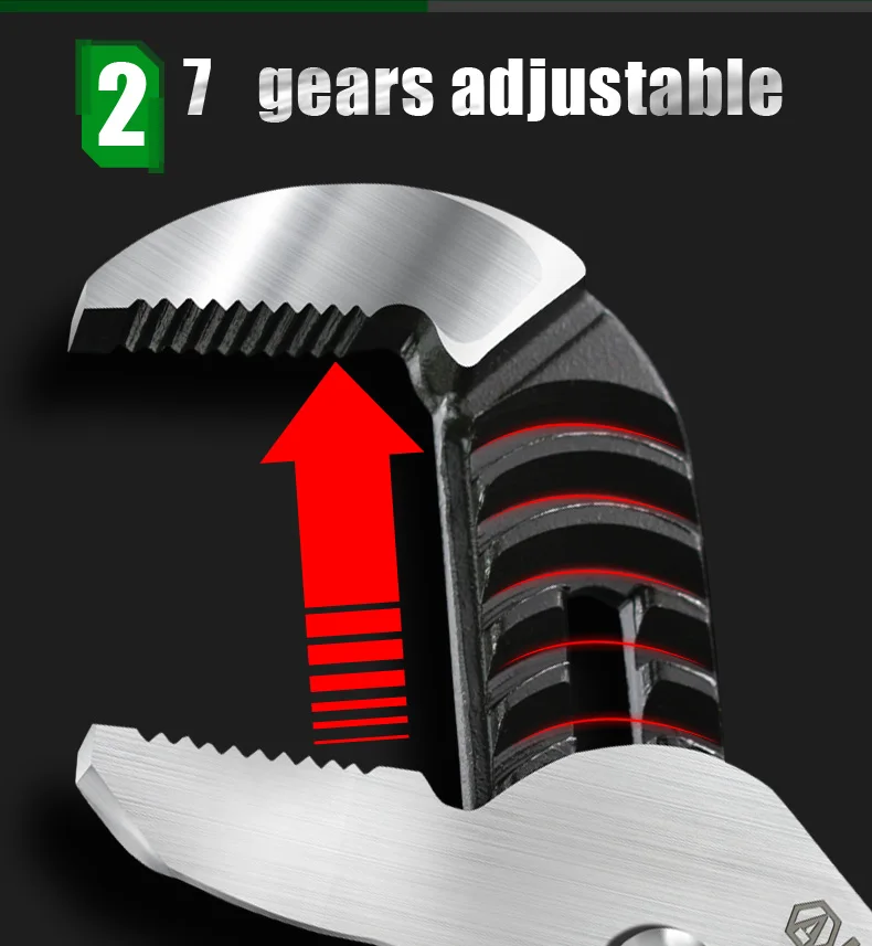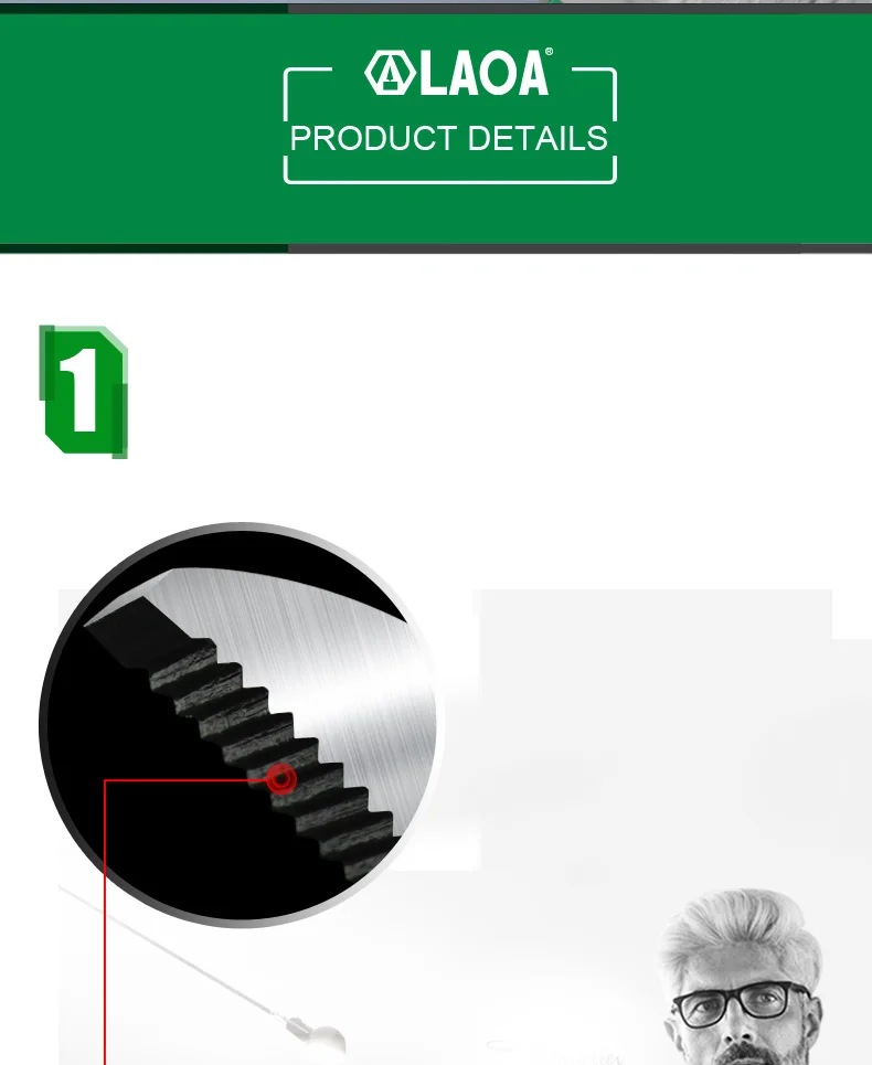 1. Зубцы глубокие и толстые, крепко держат. 2,7 положение нажатия необязательно, быстро отрегулируйте размер отверстия. 3. Тяжелая заклепка. 4. Фирменный логотип. 5. Липкая пластиковая ручка способна противоскользить.