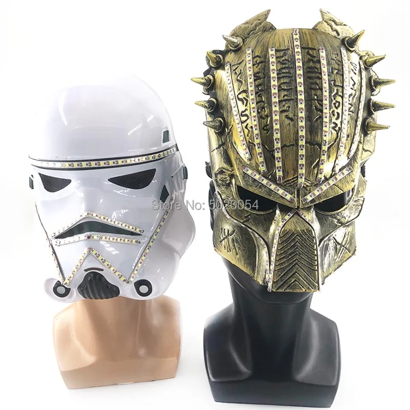 Маска для косплея по мотивам фильма «Хищник», 12 В, светящаяся неоновая маска на все лицо, маска для косплевечерние
