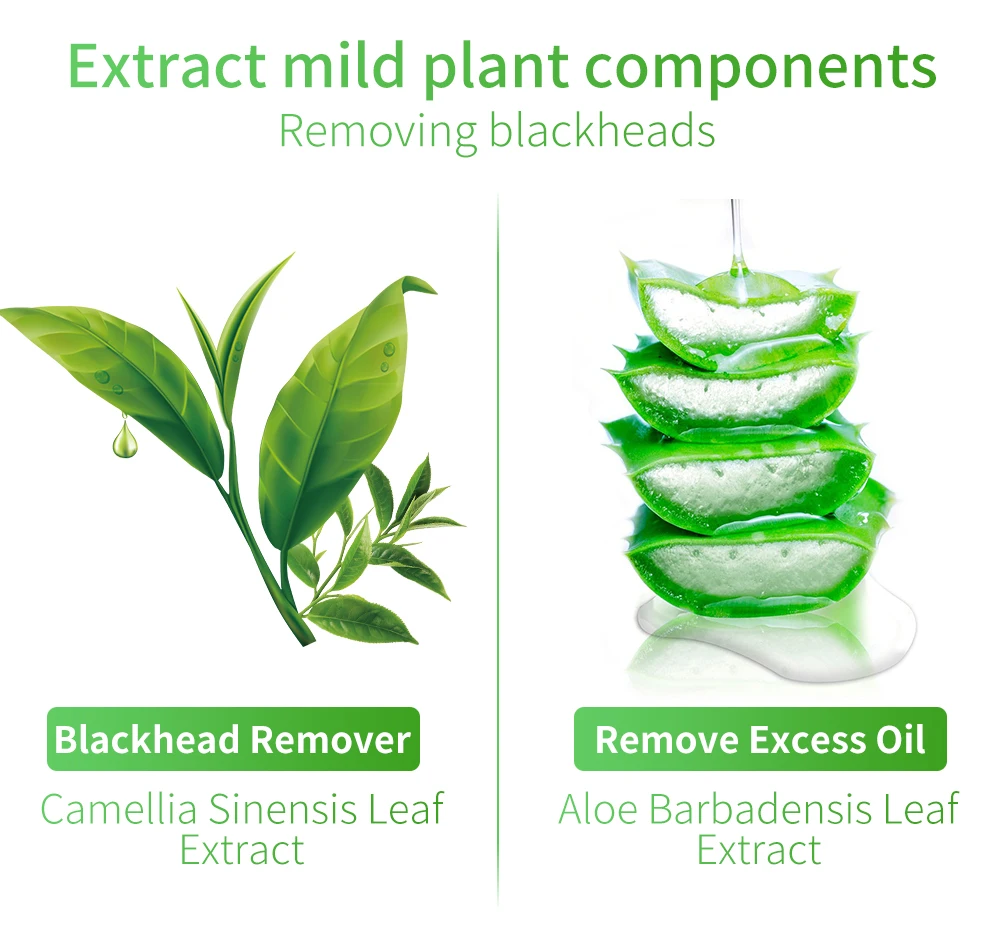 Экстракт мягких растительных компонентов Удаление черных точек и сужение пор Устройство для удаления угрей Экстракт листьев камелии Синенсис Удалите излишки масла Экстракт листьев алоэ Barbadensis