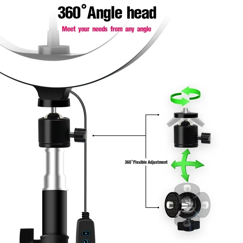 Кольцевой дизайн 26 см/10 дюймов и питание от USB: кольцевой светильник может создать эффект круглой апертуры для вашего глаза, что сделает вас более привлекательным. Usb-кабель длиной 2 м обеспечивает удобную зарядку через компьютер, ноутбук, адаптер питания или внешний аккумулятор.