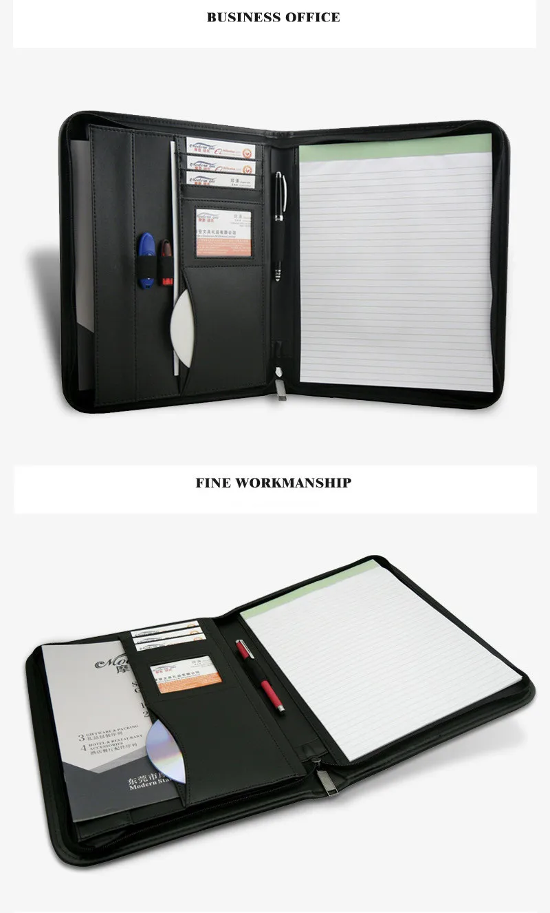 Информация * 【Заказ 10 шт. может напечатать логотип 】 【Материал 】: из искусственной кожи 【Размер 】 : A4 : 27*34,5*3 см 【Распродажи: опт и розница 【Прямая доставка 】: Поддержка [Примечание]: все товары не имеют ручки 【 Цвет 】: черный 【Емкость 】: ①. Большие боковые карманы ② Эластичная лента ③. Небольшие боковые карманы ④. Держатель для карт ⑤. Держатель ручки ⑥.Memo Теплая подсказка 1. 1 дюйм = 2,54 см, 1 см = 0,39 дюймов 2. Цвет может немного отличаться из-за настроек монитора компьютера.