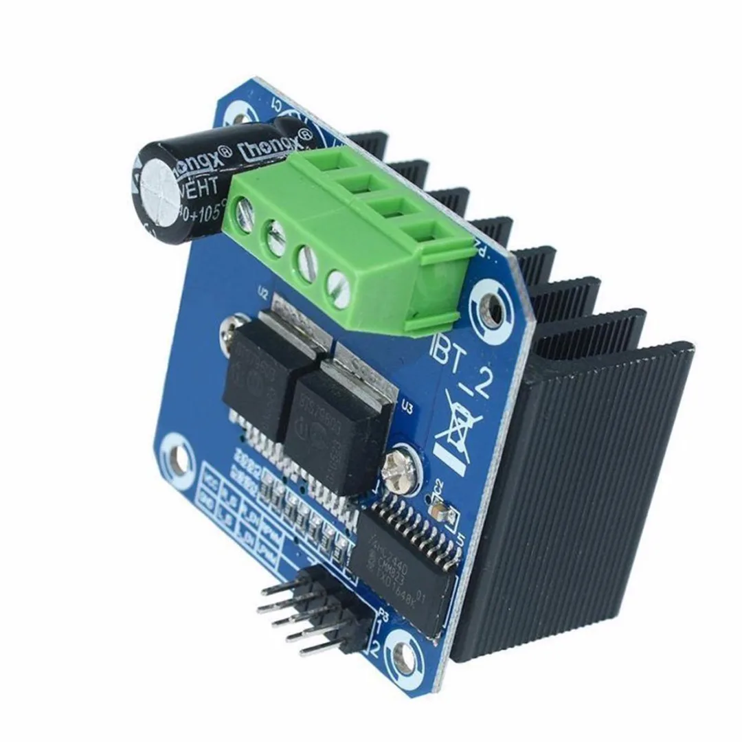 Этот привод использует модуль мостового привода all-h, состоящий из BTS7960, который имеет функцию защиты от перегрева и перегрузки по току.