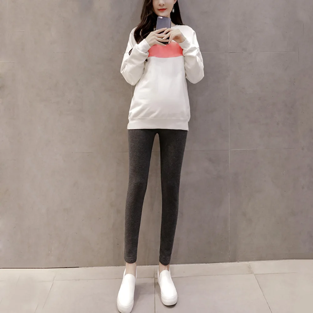 Зимние теплые хлопковые флисовые плотные леггинсы с эластичной резинкой на талии для беременных обтягивающие штаны
